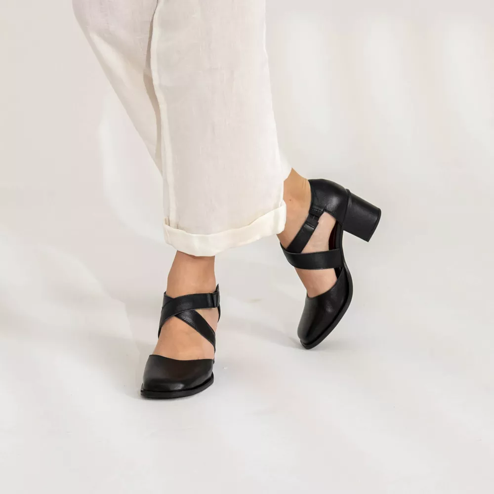O tornozelo é um ponto de foco importante, então experimente usar calças mais curtas (cropped) ou dobrar a barra para destacar as fivelas e as tiras do seu sapato. Uma calça jeans de cintura alta, por exemplo, fica incrível com a elegância do Sapato Boneca Milão, porque define a cintura e te deixa mais longilínea.