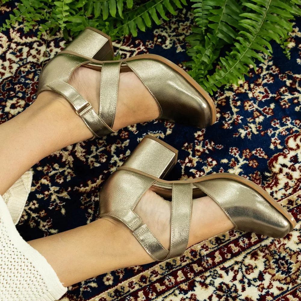 A modelo está usando o Sapato Boneca – MILÃO – Metalic